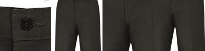 - Two slack-style front pockets, two set-in hip pockets, left pocket has button closure