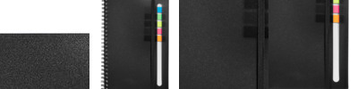 Cover is made of 80% post consumer recycled materials and metal spiral binding is made of 90% post consumer recycled materials
