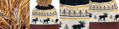 - 12" knit with solid color cuff (some patterns are rib knit cuffs)