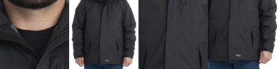- Concealed snap at top of zipper at neck